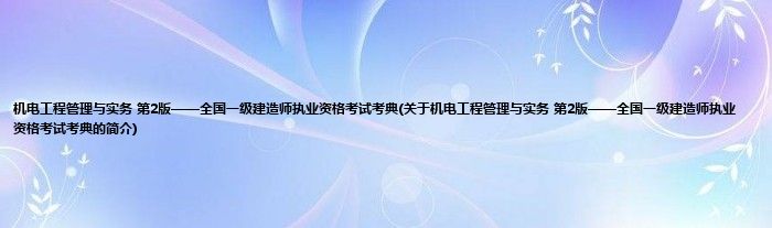 本文关于机电工程管理与实务 第2版——全国一级建造师执业资格考试考典的简介就讲解完毕,希望对大家有所帮助。