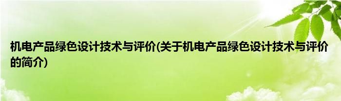 本文关于机电产品绿色设计技术与评价的简介就讲解完毕,希望对大家有所帮助。