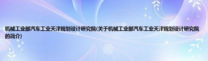 大家好,机械工业部汽车工业天津规划设计研究院,关于机械工业部汽车工业天津规划设计研究院的简介很多人还不知道,现在让我们一起来看看吧!