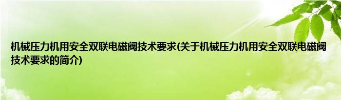本文关于机械压力机用安全双联电磁阀技术要求的简介就讲解完毕,希望对大家有所帮助。