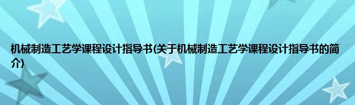 本文关于机械制造工艺学课程设计指导书的简介就讲解完毕,希望对大家有所帮助。