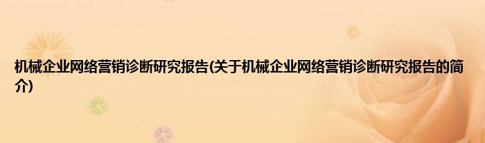 机械企业网络营销诊断研究报告(关于机械企业网络营销诊断研究报告的简介)