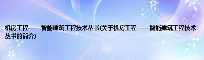 本文关于机房工程——智能建筑工程技术丛书的简介就讲解完毕,希望对大家有所帮助。