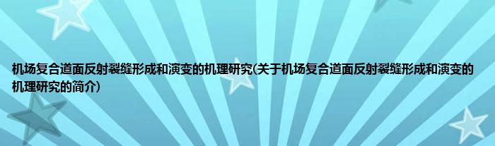 大家好,机场复合道面反射裂缝形成和演变的机理研究,关于机场复合道面反射裂缝形成和演变的机理研究的简介很多人还不知道,现在让我们一起来看看吧!