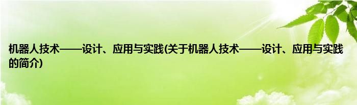 本文关于机器人技术——设计、应用与实践的简介就讲解完毕,希望对大家有所帮助。