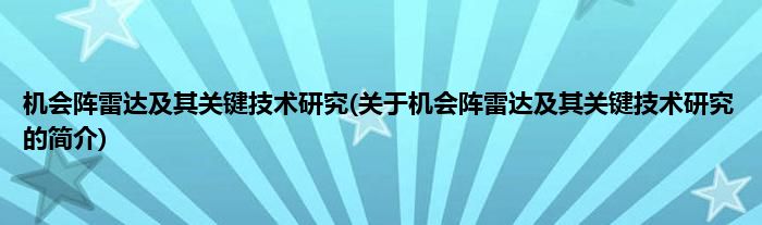 本文关于机会阵雷达及其关键技术研究的简介就讲解完毕,希望对大家有所帮助。