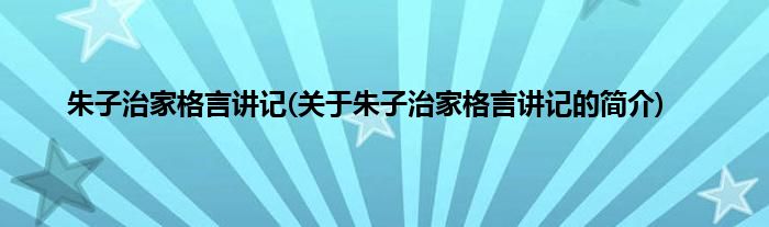 大家好,朱子治家格言讲记,关于朱子治家格言讲记的简介很多人还不知道,现在让我们一起来看看吧!