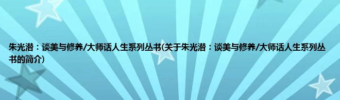 本文关于朱光潜:谈美与修养/大师话人生系列丛书的简介就讲解完毕,希望对大家有所帮助。