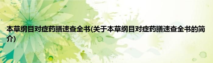 本文关于本草纲目对症药膳速查全书的简介就讲解完毕,希望对大家有所帮助。