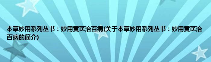 本文关于本草妙用系列丛书:妙用黄芪治百病的简介就讲解完毕,希望对大家有所帮助。