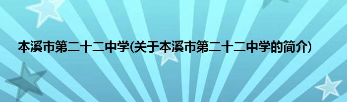 大家好,本溪市第二十二中学,关于本溪市第二十二中学的简介很多人还不知道,现在让我们一起来看看吧!
