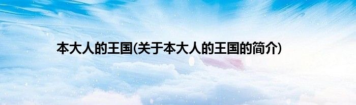 大家好,本大人的王国,关于本大人的王国的简介很多人还不知道,现在让我们一起来看看吧!