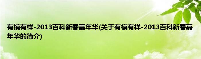 有模有样-2013百科新春嘉年华(关于有模有样-2013百科新春嘉年华的简介)