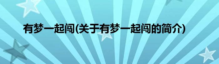 大家好,有梦一起闯,关于有梦一起闯的简介很多人还不知道,现在让我们一起来看看吧!