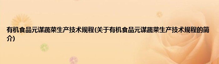 本文关于有机食品元谋蔬菜生产技术规程的简介就讲解完毕,希望对大家有所帮助。