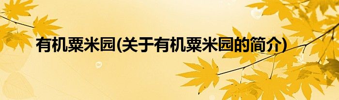 本文关于有机粟米园的简介就讲解完毕,希望对大家有所帮助。