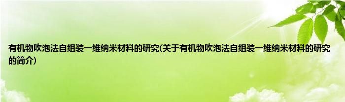 大家好,有机物吹泡法自组装一维纳米材料的研究,关于有机物吹泡法自组装一维纳米材料的研究的简介很多人还不知道,现在让我们一起来看看吧!