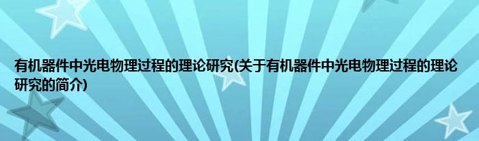 本文关于有机器件中光电物理过程的理论研究的简介就讲解完毕,希望对大家有所帮助。