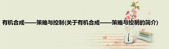 本文关于有机合成——策略与控制的简介就讲解完毕,希望对大家有所帮助。