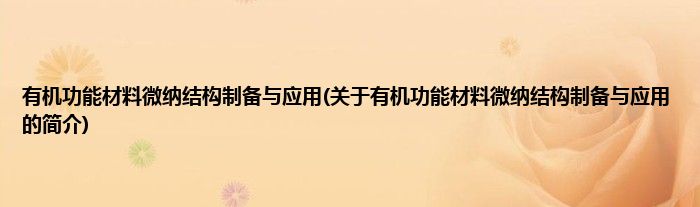 大家好,有机功能材料微纳结构制备与应用,关于有机功能材料微纳结构制备与应用的简介很多人还不知道,现在让我们一起来看看吧!