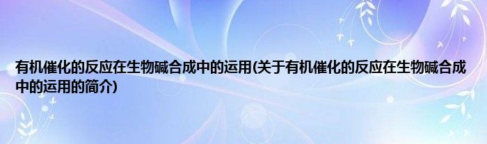 本文关于有机催化的反应在生物碱合成中的运用的简介就讲解完毕,希望对大家有所帮助。