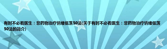 本文关于有时不必看医生:非药物治疗情绪低落50法的简介就讲解完毕,希望对大家有所帮助。