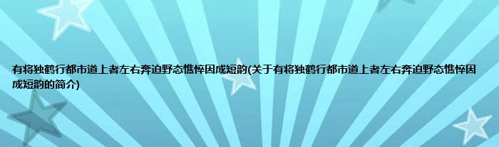 大家好,有将独鹤行都市道上者左右奔迫野态憔悴因成短韵,关于有将独鹤行都市道上者左右奔迫野态憔悴因成短韵的简介很多人还不知道,现在让我们一起来看看吧!