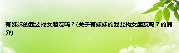 本文关于有妹妹的我要找女朋友吗?的简介就讲解完毕,希望对大家有所帮助。