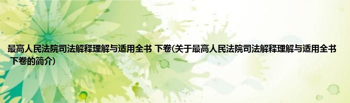 大家好,最高人民法院司法解释理解与适用全书 下卷,关于最高人民法院司法解释理解与适用全书 下卷的简介很多人还不知道,现在让我们一起来看看吧!