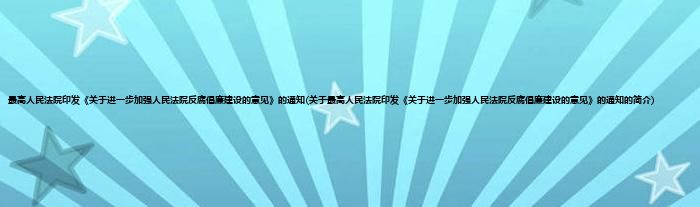 最高人民法院印发《关于进一步加强人民法院反腐倡廉建设的意见》的通知(关于最高人民法院印发《关于进一步加强人民法院反腐倡廉建设的意见》的通知的简介)