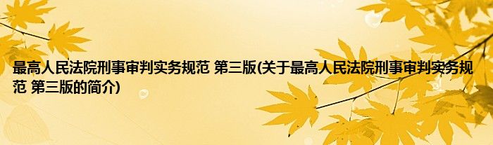 本文关于最高人民法院刑事审判实务规范 第三版的简介就讲解完毕,希望对大家有所帮助。