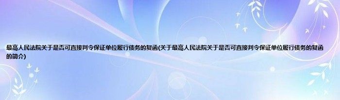 最高人民法院关于是否可直接判令保证单位履行债务的复函(关于最高人民法院关于是否可直接判令保证单位履行债务的复函的简介)