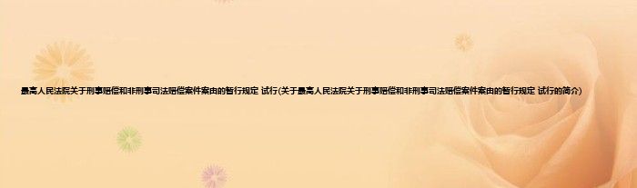 本文关于最高人民法院关于刑事赔偿和非刑事司法赔偿案件案由的暂行规定 试行的简介就讲解完毕,希望对大家有所帮助。