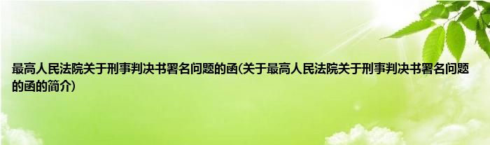 最高人民法院关于刑事判决书署名问题的函(关于最高人民法院关于刑事判决书署名问题的函的简介)