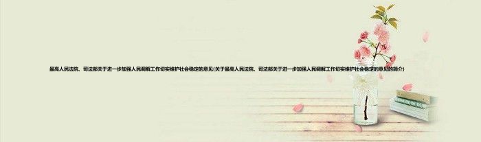 大家好,最高人民法院、司法部关于进一步加强人民调解工作切实维护社会稳定的意见,关于最高人民法院、司法部关于进一步加强人民调解工作切实维护社会稳定的意见的简介很多人还不知道,现在让我们一起来看看吧!