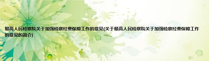大家好,最高人民检察院关于加强检察经费保障工作的意见,关于最高人民检察院关于加强检察经费保障工作的意见的简介很多人还不知道,现在让我们一起来看看吧!