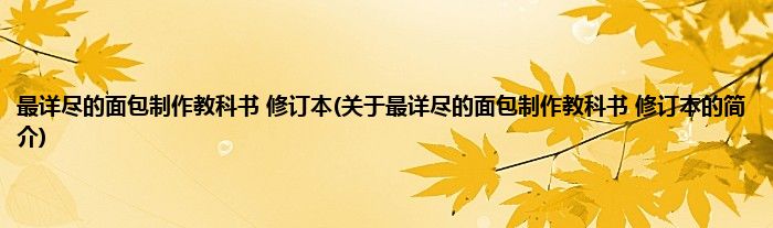 本文关于最详尽的面包制作教科书 修订本的简介就讲解完毕,希望对大家有所帮助。