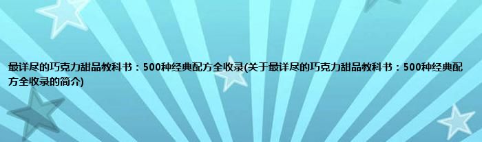 本文关于最详尽的巧克力甜品教科书:500种经典配方全收录的简介就讲解完毕,希望对大家有所帮助。