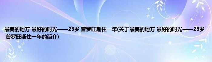 本文关于最美的地方,最好的时光——25岁,普罗旺斯住一年的简介就讲解完毕,希望对大家有所帮助。
