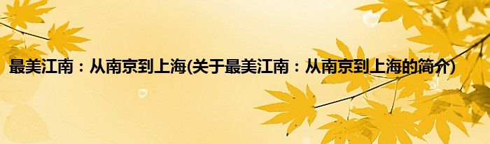 本文关于最美江南:从南京到上海的简介就讲解完毕,希望对大家有所帮助。