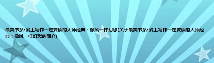 本文关于最美书系·爱上写作一定要读的大师经典:像风一样幻想的简介就讲解完毕,希望对大家有所帮助。