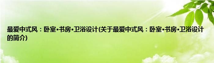 本文关于最爱中式风:卧室·书房·卫浴设计的简介就讲解完毕,希望对大家有所帮助。