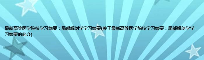本文关于最新高等医学院校学习纲要:局部解剖学学习纲要的简介就讲解完毕,希望对大家有所帮助。