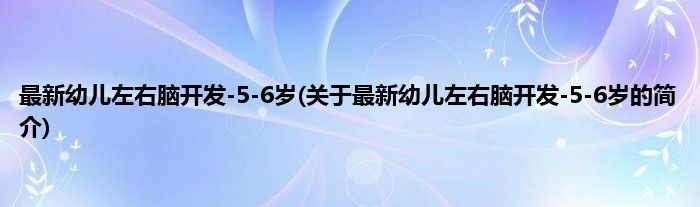 本文关于最新幼儿左右脑开发-5-6岁的简介就讲解完毕,希望对大家有所帮助。