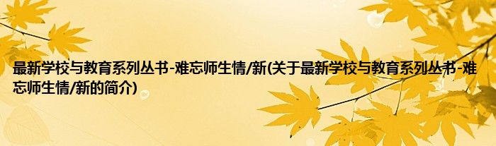 大家好,最新学校与教育系列丛书-难忘师生情/新,关于最新学校与教育系列丛书-难忘师生情/新的简介很多人还不知道,现在让我们一起来看看吧!