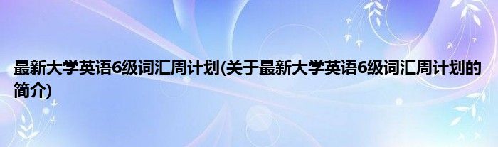 本文关于最新大学英语6级词汇周计划的简介就讲解完毕,希望对大家有所帮助。