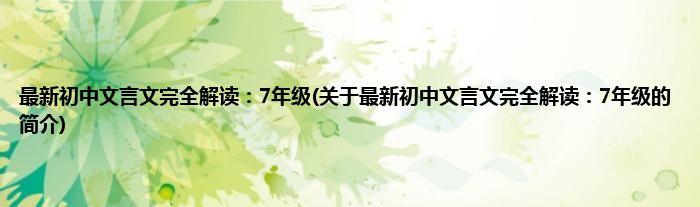 本文关于最新初中文言文完全解读:7年级的简介就讲解完毕,希望对大家有所帮助。