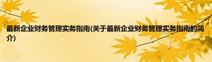本文关于最新企业财务管理实务指南的简介就讲解完毕,希望对大家有所帮助。