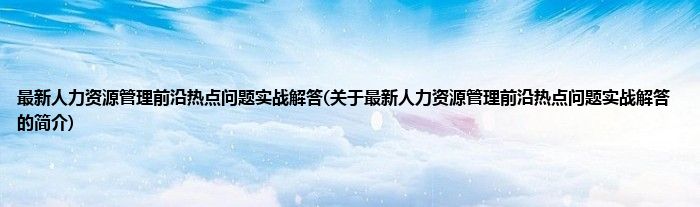 大家好,最新人力资源管理前沿热点问题实战解答,关于最新人力资源管理前沿热点问题实战解答的简介很多人还不知道,现在让我们一起来看看吧!