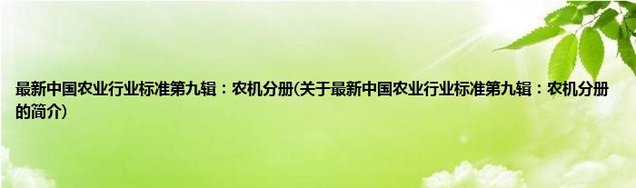本文关于最新中国农业行业标准第九辑:农机分册的简介就讲解完毕,希望对大家有所帮助。